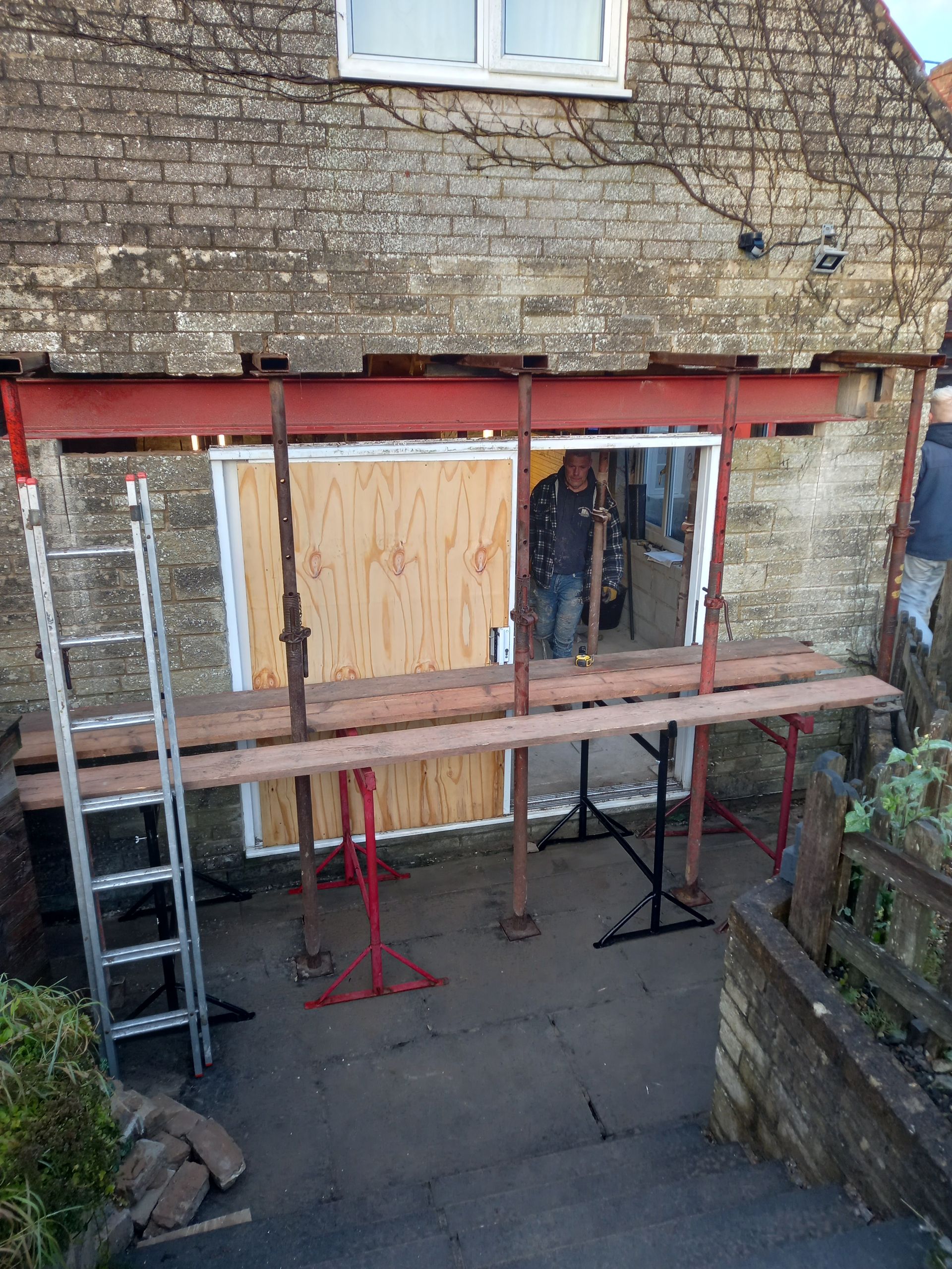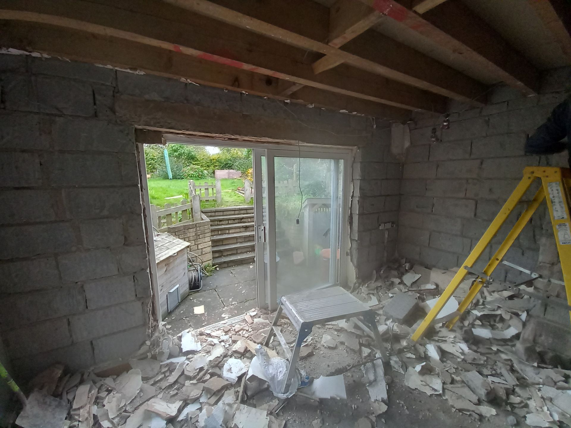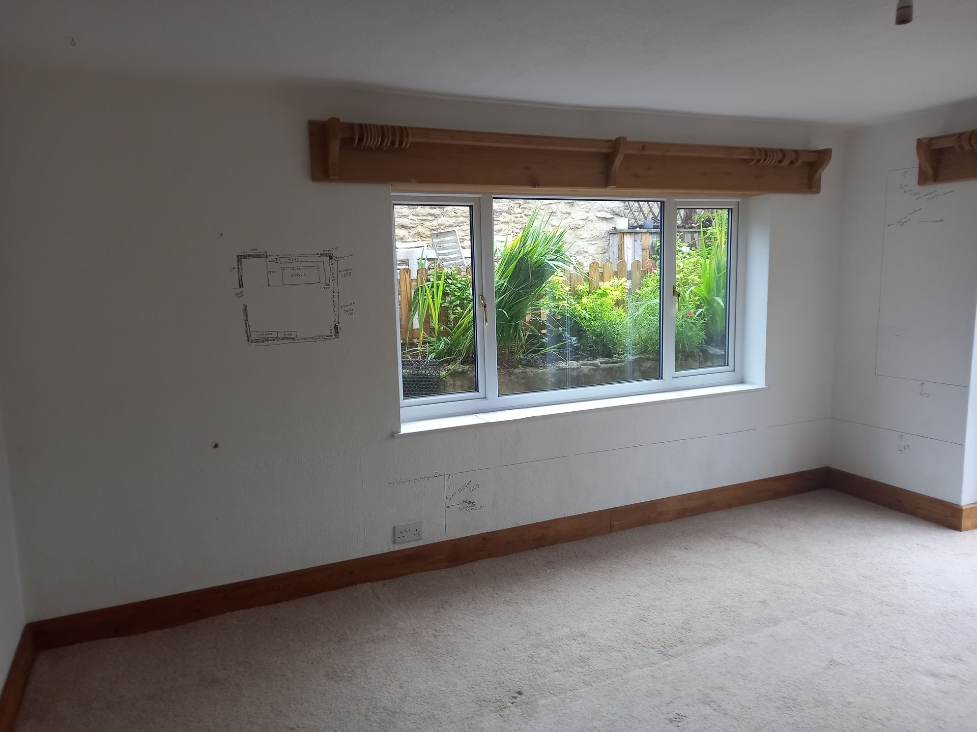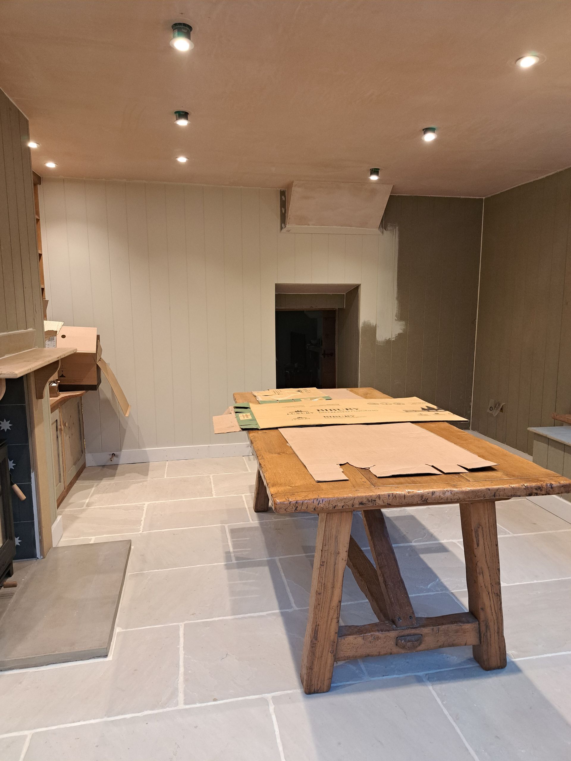 Work is been carried out to refurbish and alter a room with-in Ascot Cottage which comprises of taking the old Upvc French doors and windows out and making the opening wider to fit a pair of Timber French doors with window and fan light. Work is also been carried out to re-build the chimney breast to allow for a log burner, fully strip out the old walls and dampproof the walls, lay a new tiled floor then fitting a bespoke cladding board to the walls along with seating area.