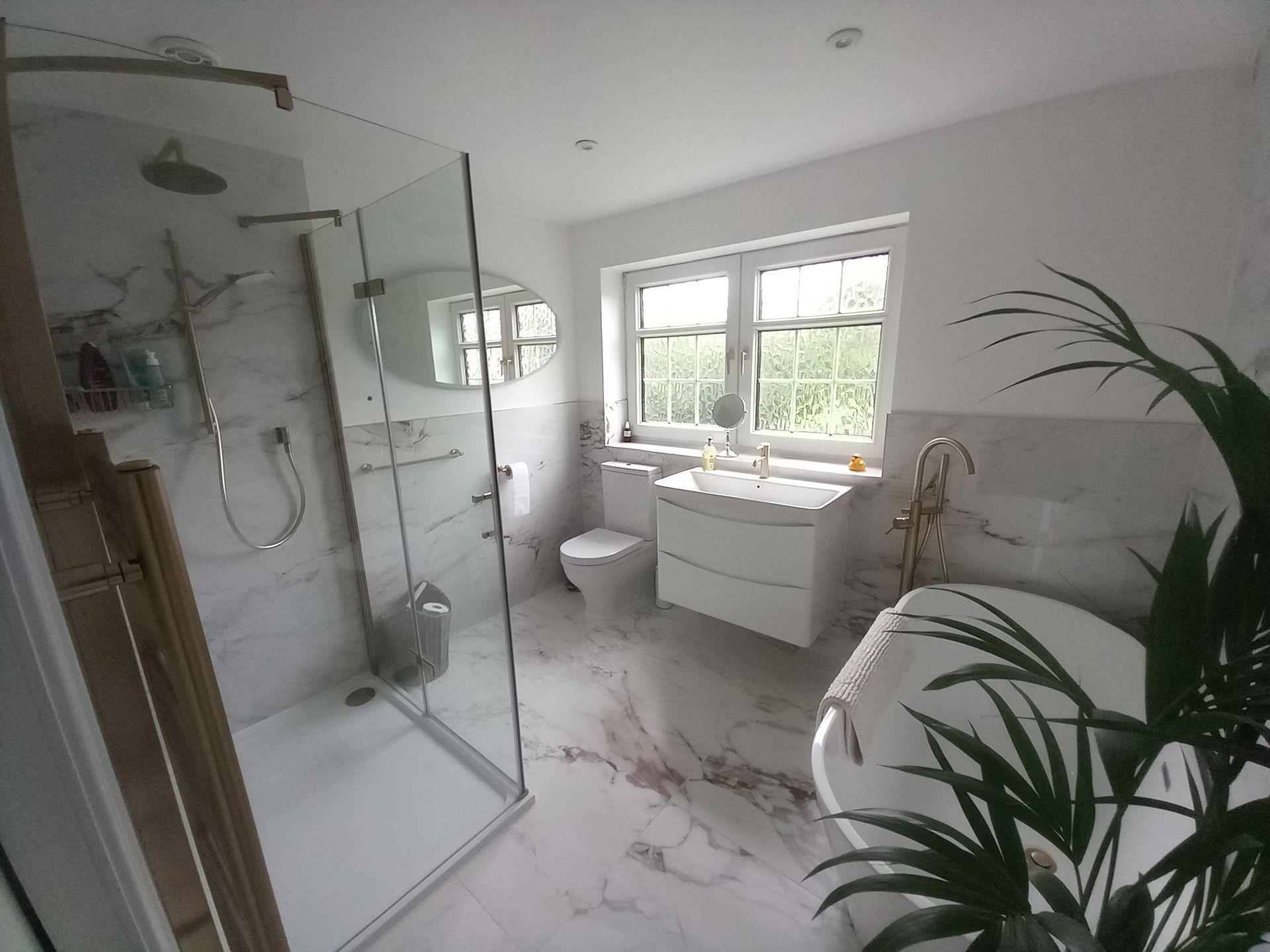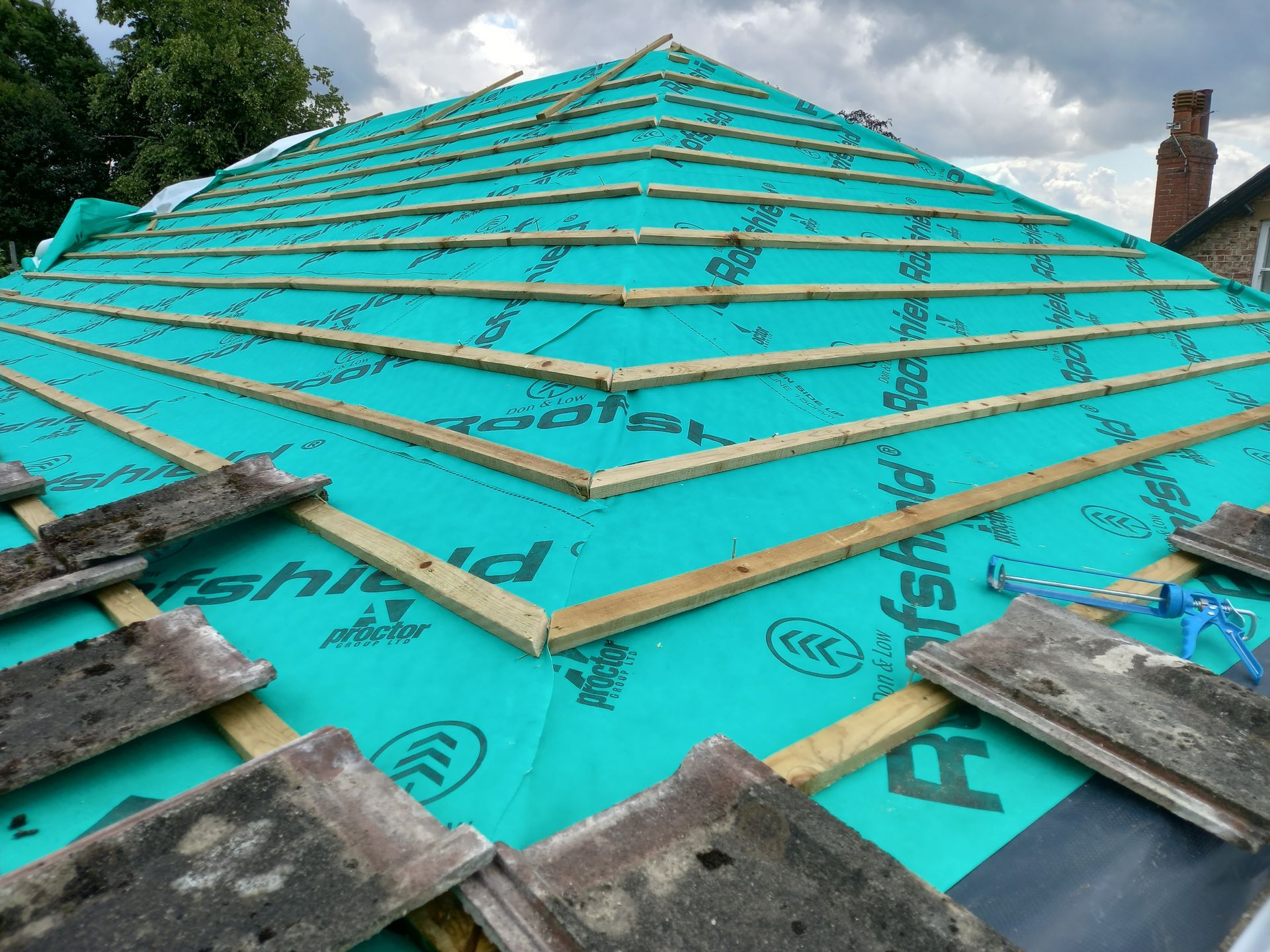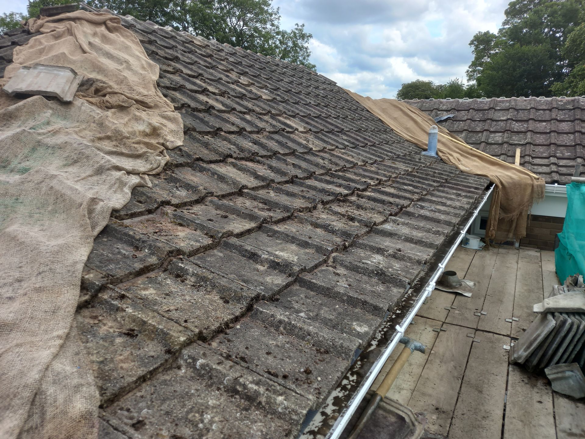 Work has been carried out on this house in Pickering to refurbish and update a bathroom which includes the moving and creating new stud walls to create a new passage and shower room. Work has also been carried out to strip off the existing roof tiles, replace the old tile battens and felt with new then re-fit the old tiles and ridges back. New white Upvc soffits and facias have been fitted.