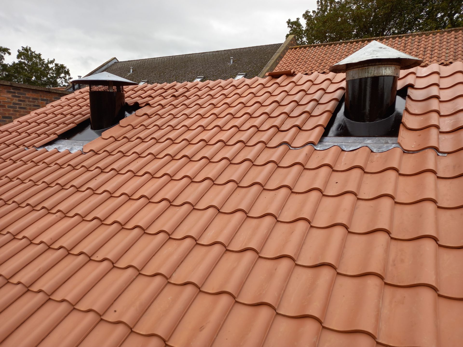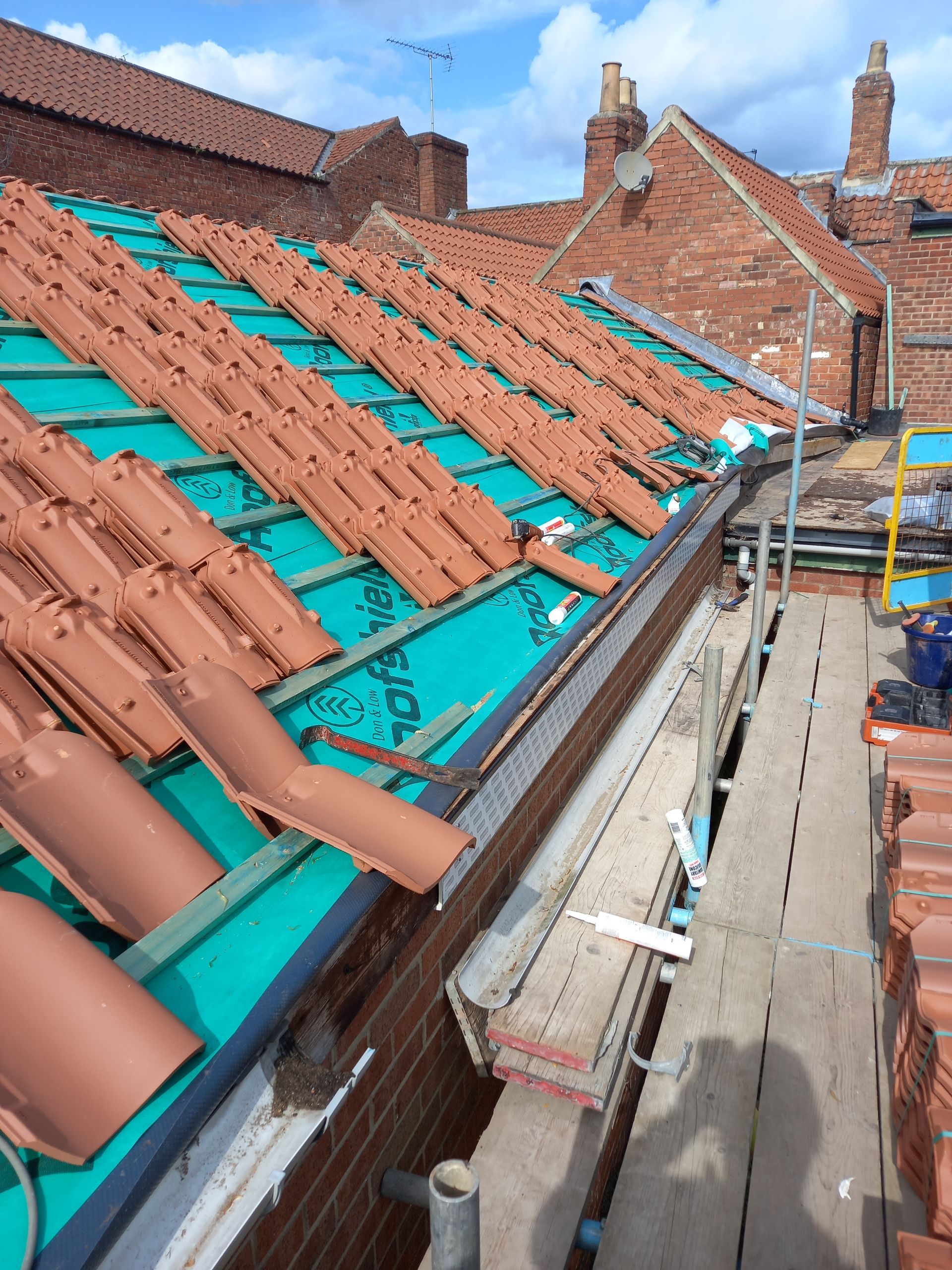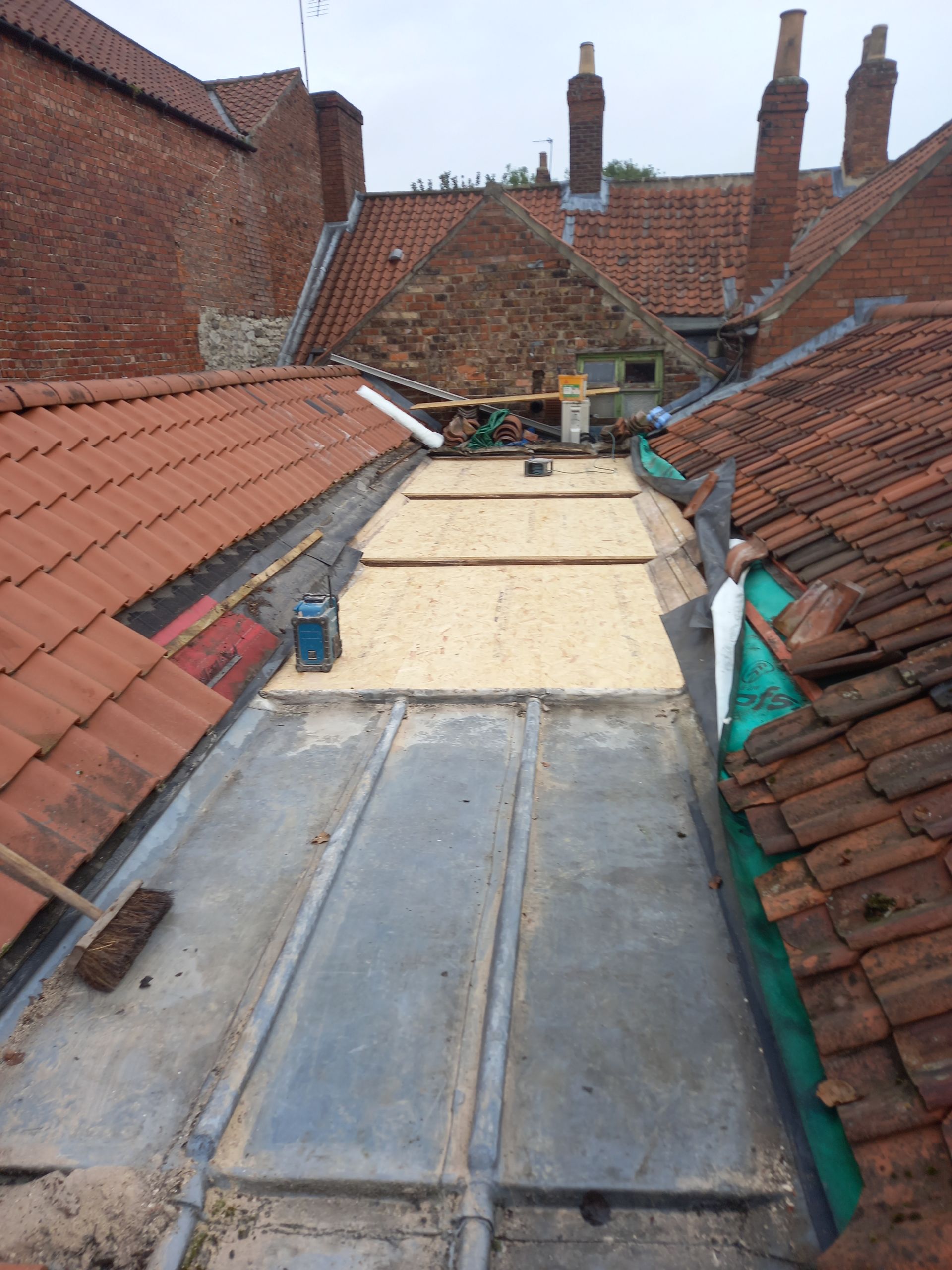 We carried out major roof and repair works to Namesta Bengal's roof. The works required stripping out a lead roof valley between Namaste and the neighbouring property and replacing it with a Grp valley. The main roof was stripped, re-felted and tile battened and new old english pan tiles were put on.