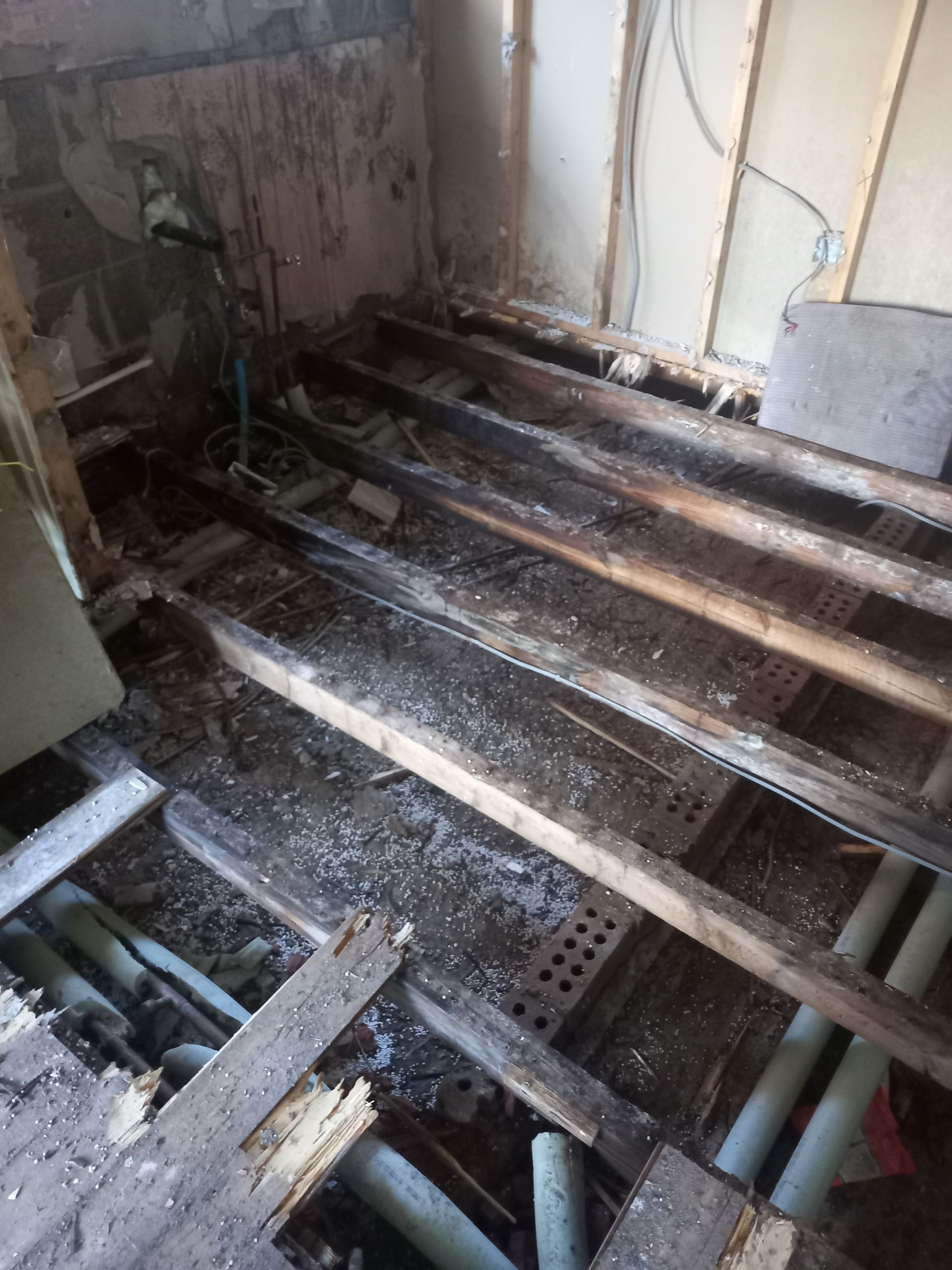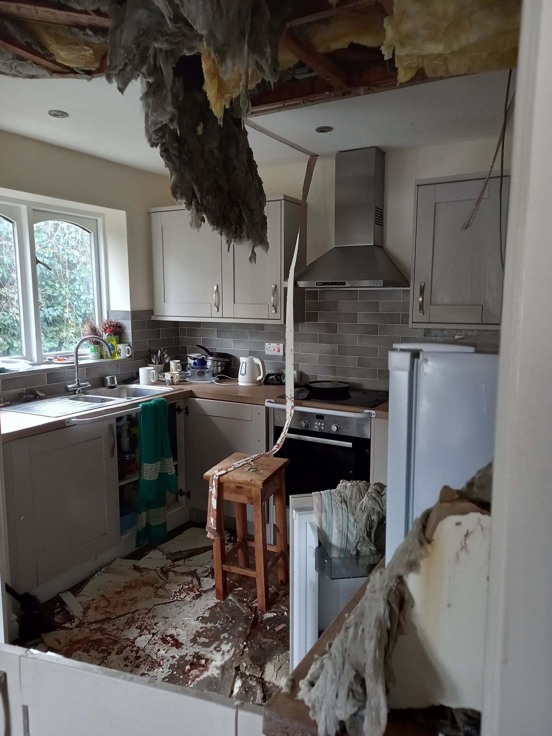 Work is underway to repair a flood damaged property in Pickering were a water pipe has split allowing water to damage several rooms. The house has currently been stripped of all water damage materials and is currently been dried out.