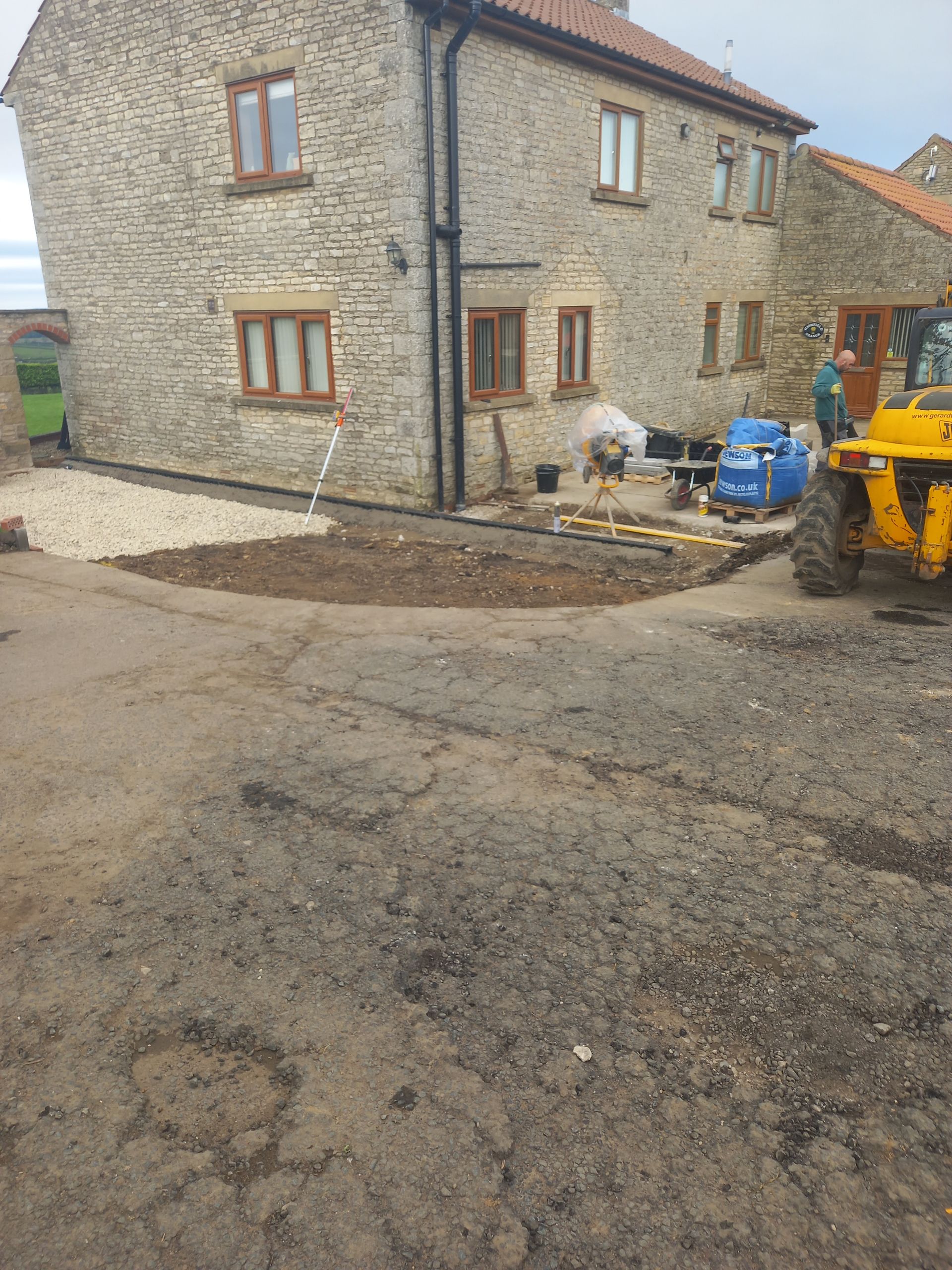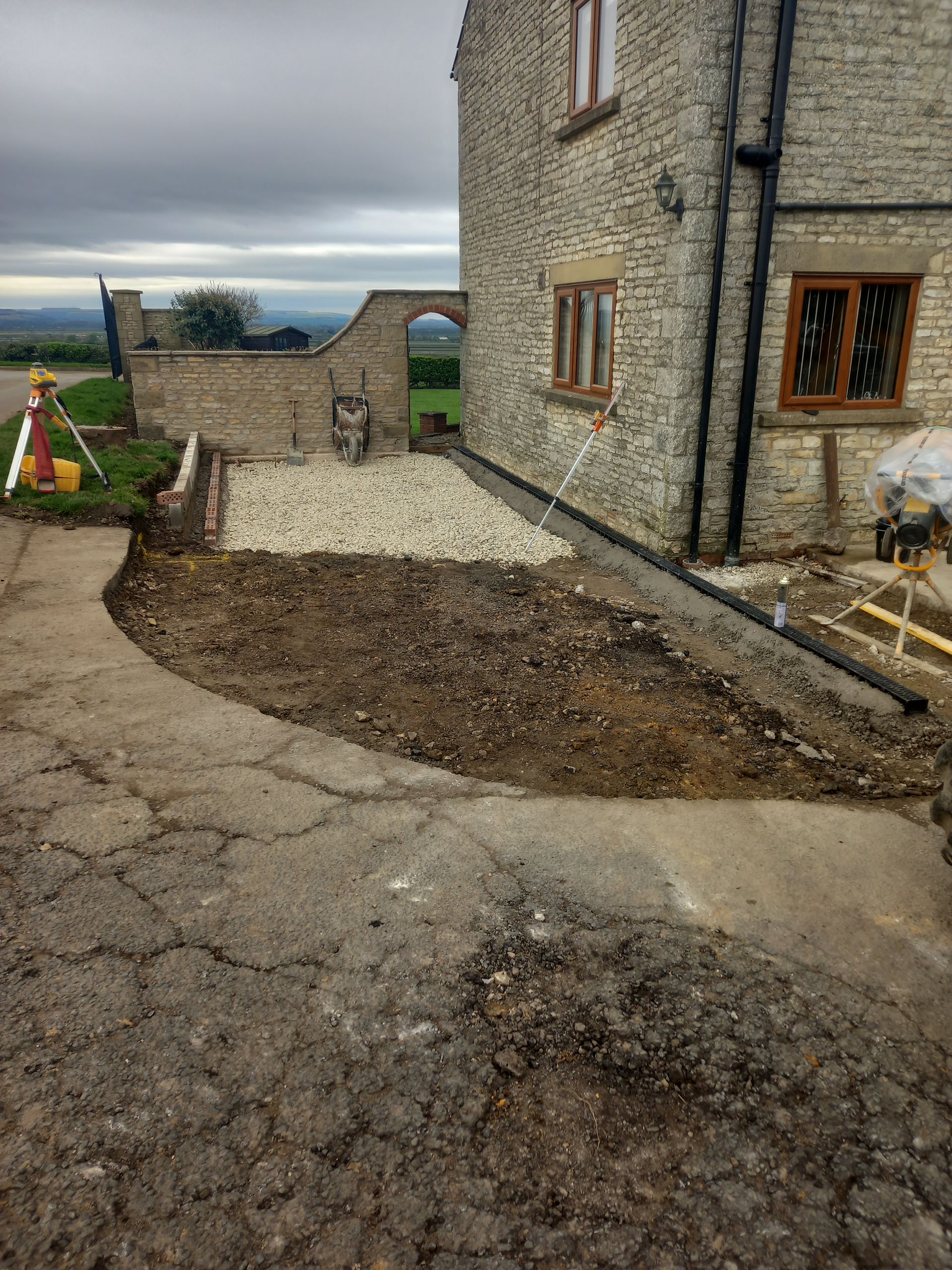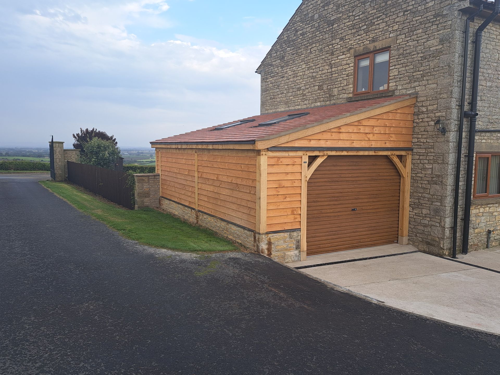 Work was carried out to alter the existing driveway and build a stone load bearing wall for the Oak framed garage to sit on.