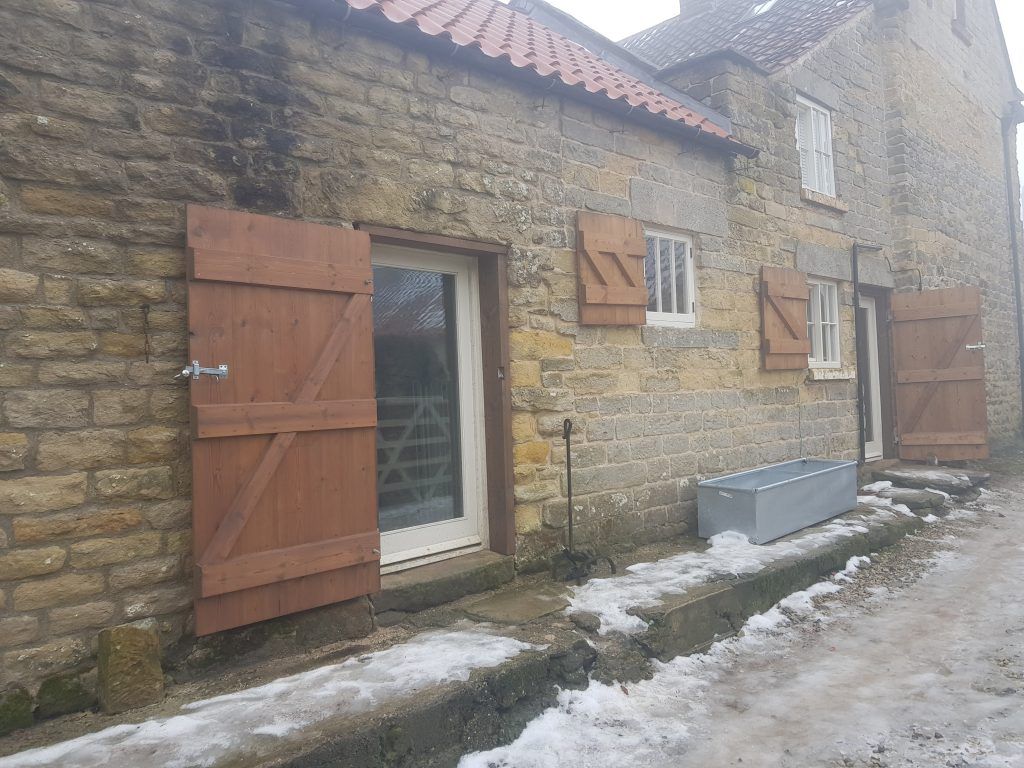 We carried out work to take off the roof of the main barn and fit a new timber roof reinstating the existing timber A frames, then fitting new tiles on front elevation side and re-using the existing roof tiles on the back elevation. Our Joiner’s made and fitted all new timber doors and windows. The small barn was rebuilt. And additional new doors were made and fitted to the main house.