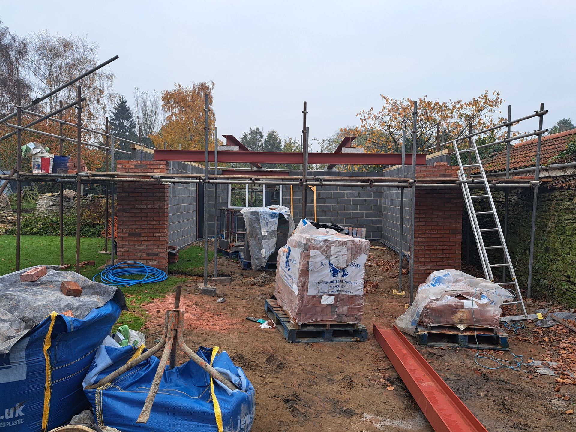 Work is been currently carried out to construct a new brick and tile built double garage along with a new driveway and footpath around the garage.